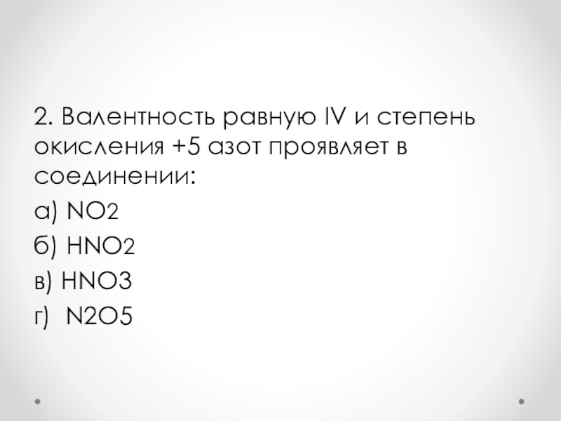 Слайд 32. Валентность равную IV и степень окисления +5 азот проявляет в