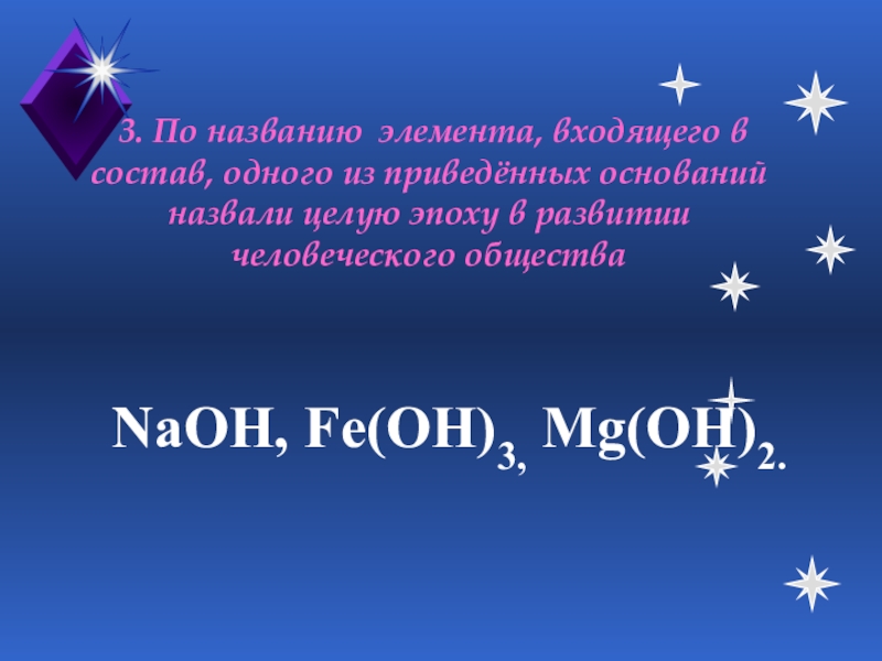 NaOH, Fe(OH)3, Mg(OH)2.