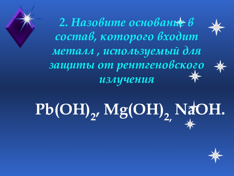 Pb(OH)2, Mg(OH)2, NaOH.