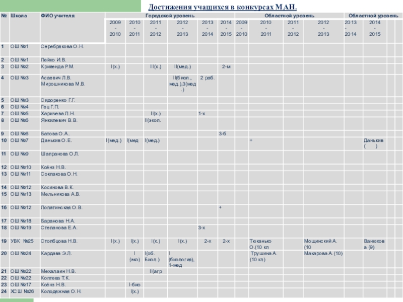 Слайд 25Достижения учащихся в конкурсах МАН.