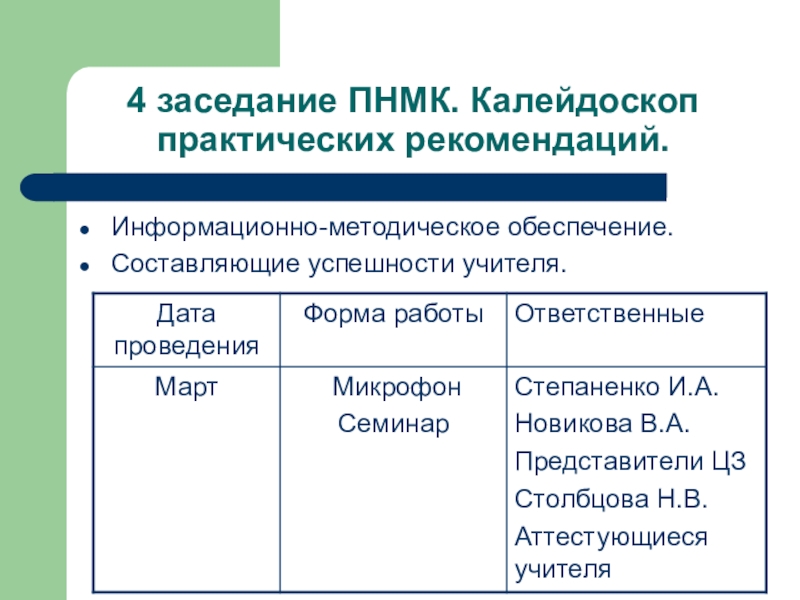 На заседаниях ПНМК оформлялись выставки новинок методической прессы, изучались нормативно-правовые документы.