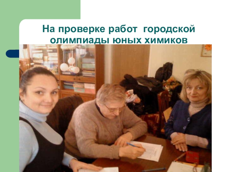 Слайд 13На проверке работ городской олимпиады юных химиков