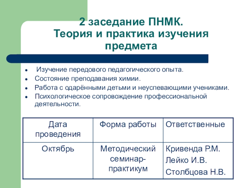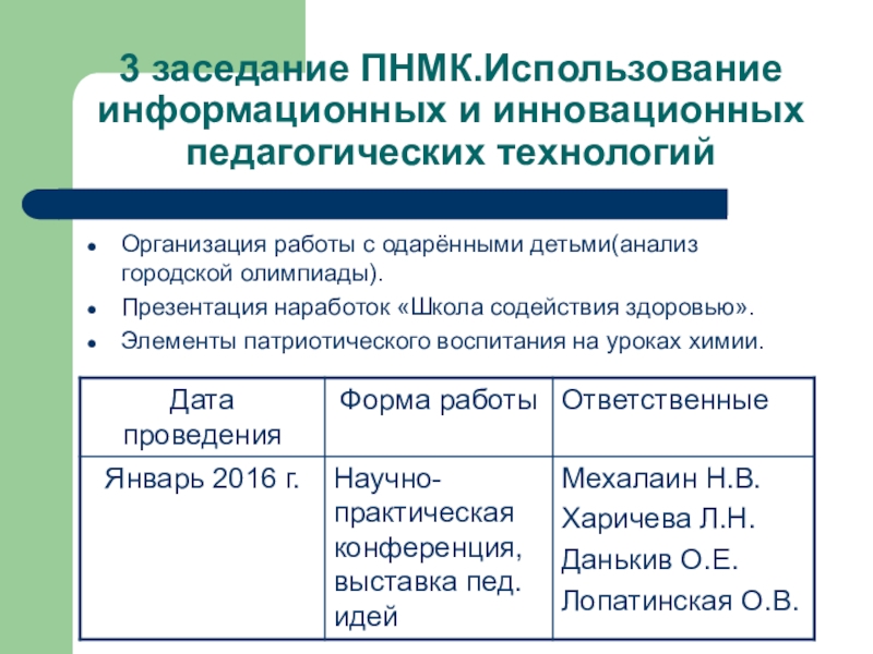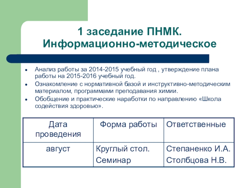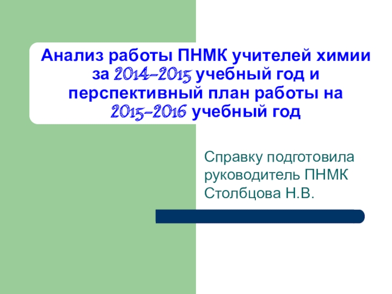Слайд 1Анализ работы ПНМК учителей химии за 2014-2015 учебный год и перспективный