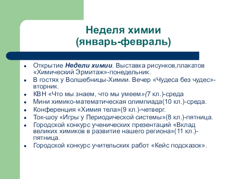 Городской конкурс ученических презентаций «Вклад великих химиков в развитие нашего региона»(11 кл.)-пятница.