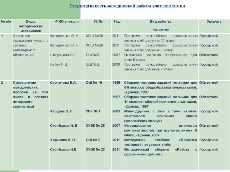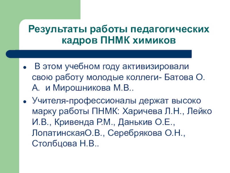 Слайд 7Результаты работы педагогических кадров ПНМК химиков
