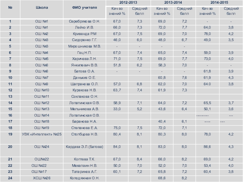 Слайд 26Результативность профессиональной деятельности учителей химии.