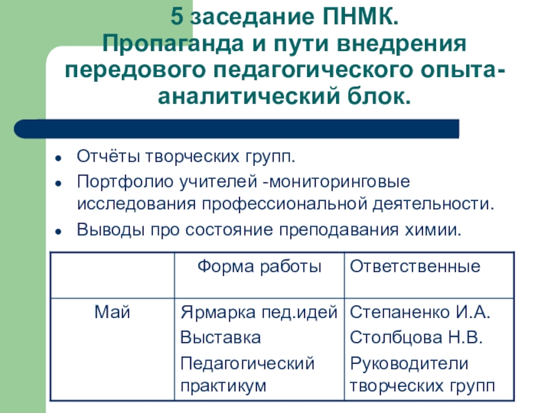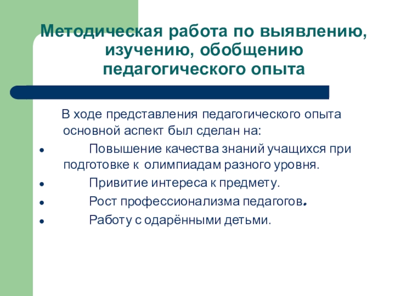 Слайд 5Методическая работа по выявлению, изучению, обобщению педагогического опыта