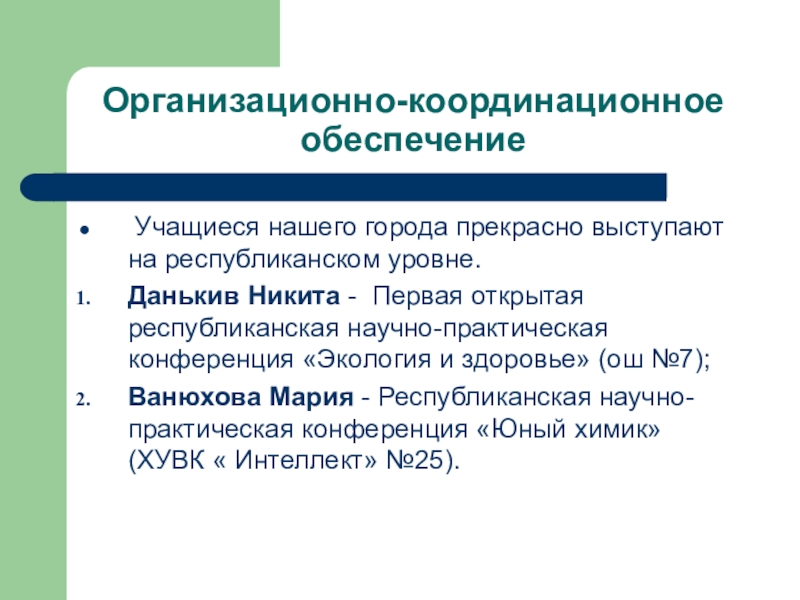 Ванюхова Мария - Республиканская научно-практическая конференция «Юный химик» (ХУВК « Интеллект» №25).