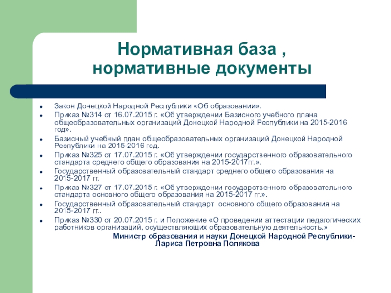 Приказ №314 от 16.07.2015 г. «Об утверждении Базисного учебного плана общеобразовательных организаций Донецкой Народной Республики на 2015-2016 год».