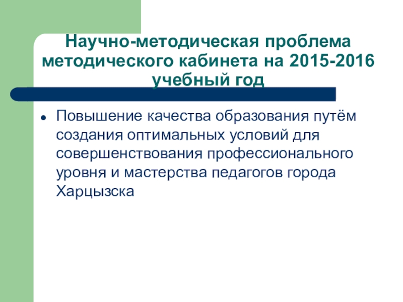 Слайд 33Научно-методическая проблема методического кабинета на 2015-2016 учебный год