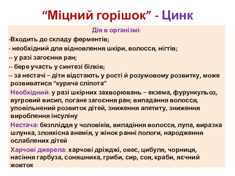Слайд 17“Міцний горішок” - Цинк