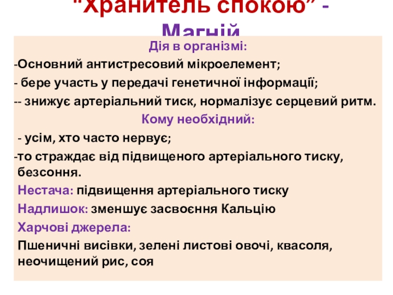 Слайд 15“Хранитель спокою” - Магній
