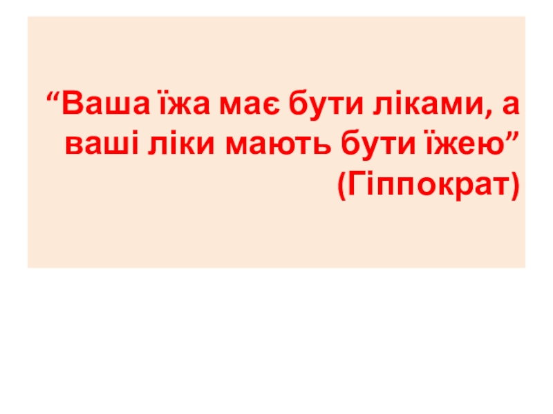 Слайд 18“Ваша їжа має бути ліками, а ваші ліки мають бути їжею”