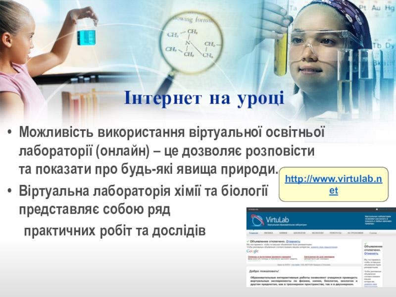 Віртуальна лабораторія хімії та біології представляє собою ряд
