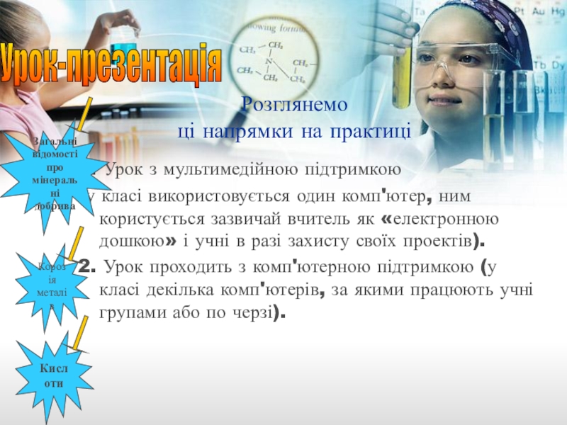 2. Урок проходить з комп'ютерною підтримкою (у класі декілька комп'ютерів, за якими працюють учні групами або по черзі).
