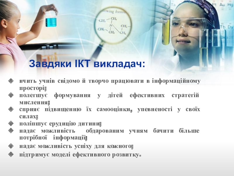 Слайд 8Викладачу застосування ІКТ дозволяє: