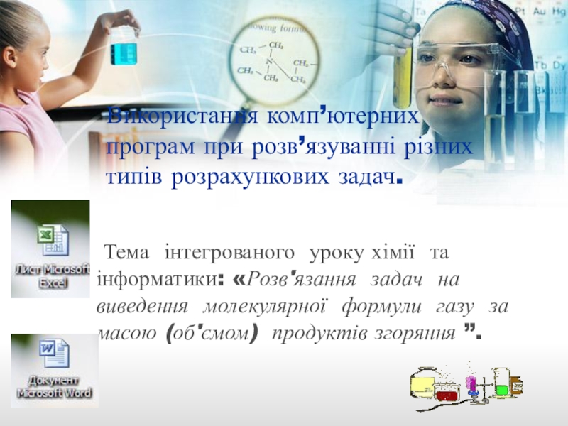 хімії та інформатики: «Розв'язання задач на виведення молекулярної формули газу за масою (об'ємом) продуктів згоряння ”.
