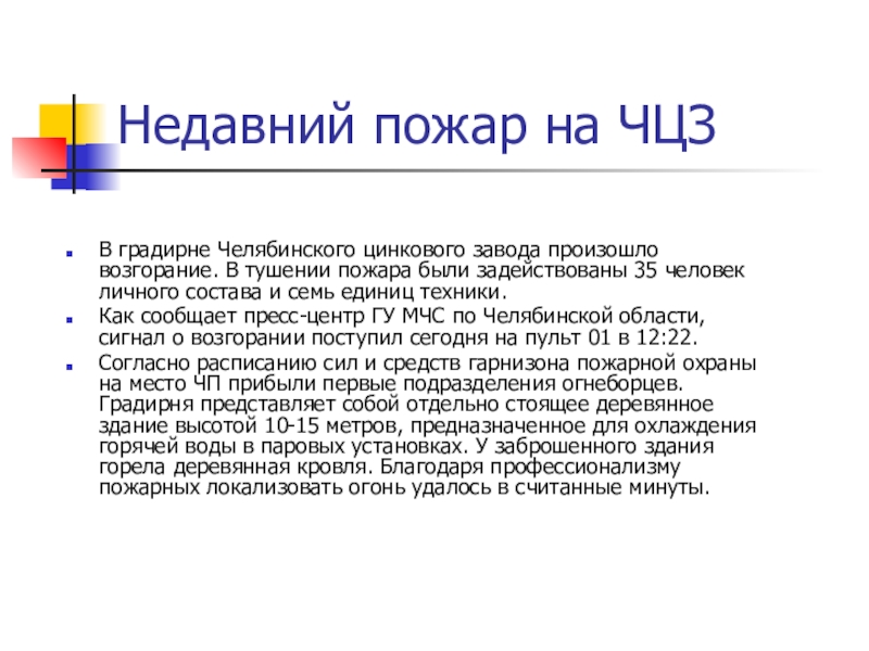 Слайд 11Недавний пожар на ЧЦЗ