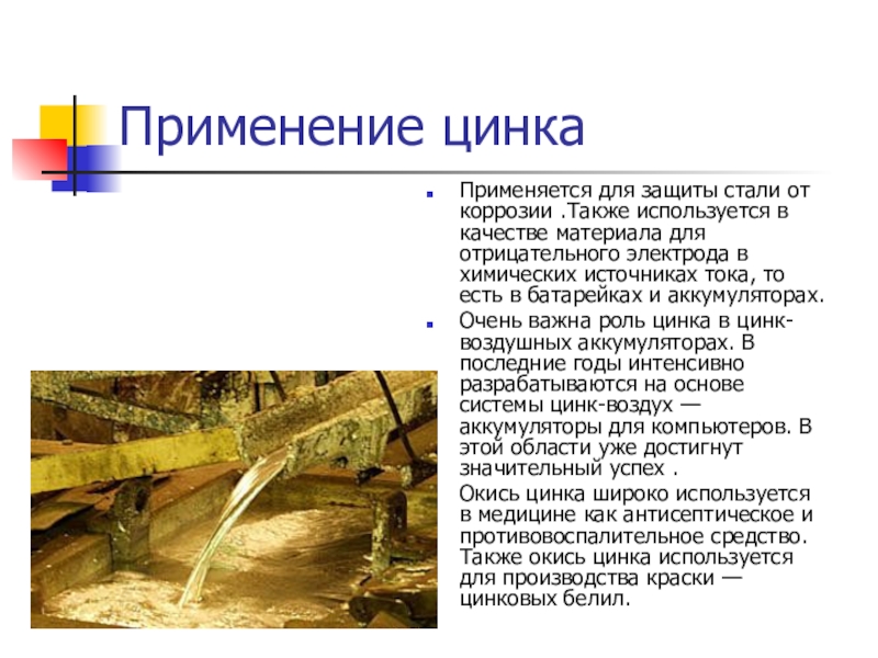 Слайд 8Применение цинка