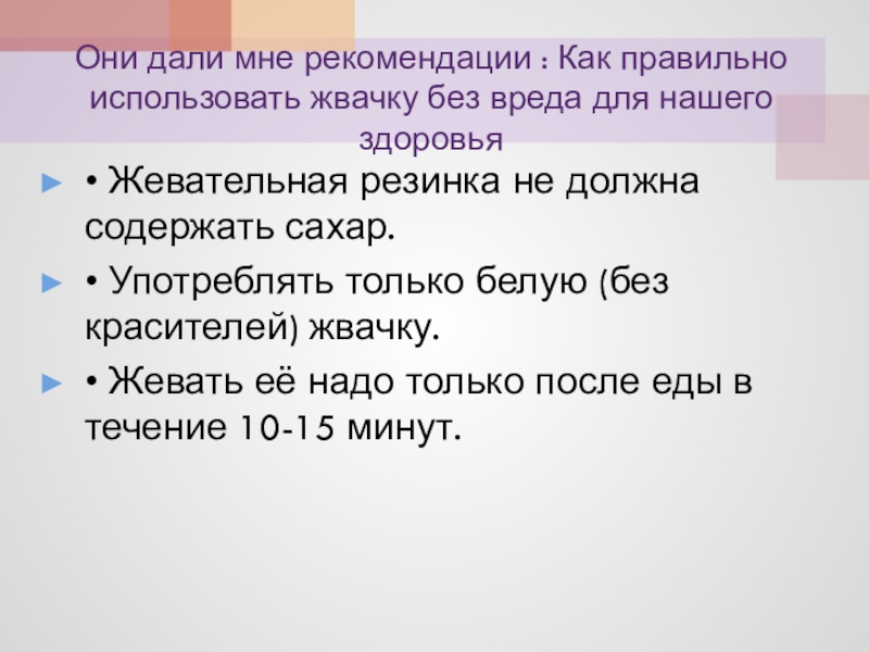 • Употреблять только белую (без красителей) жвачку.