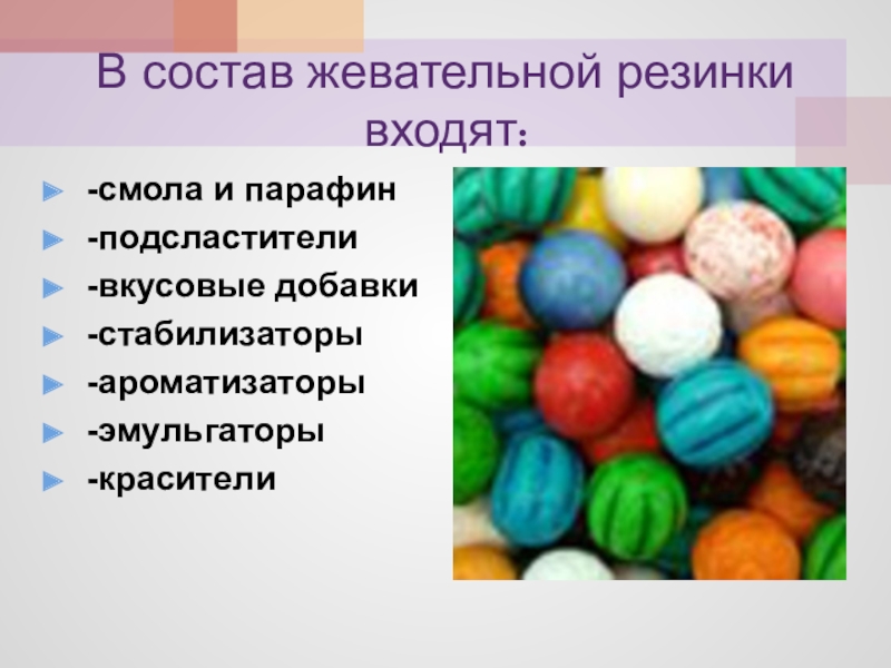 • Жевательная резинка не должна содержать сахар.