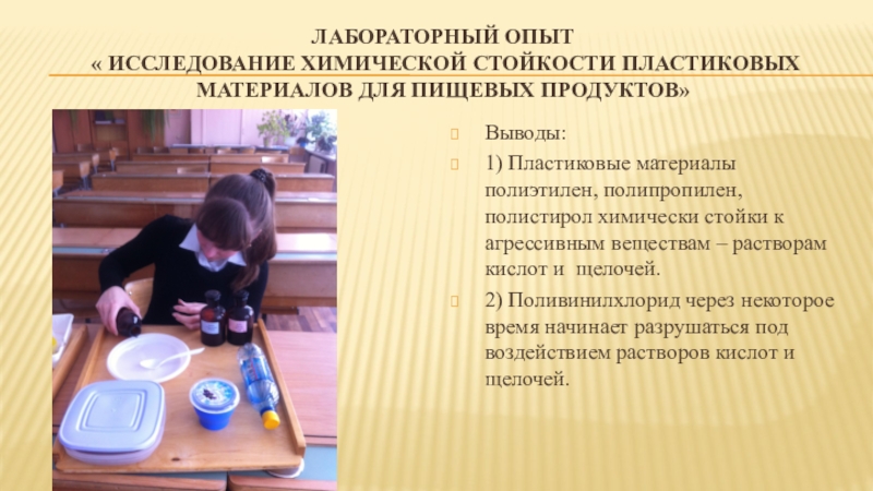 « Исследование химической стойкости пластиковых материалов для пищевых продуктов»