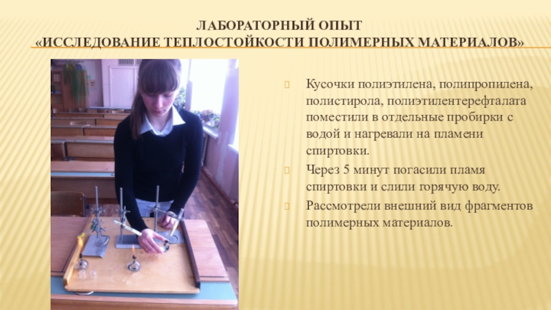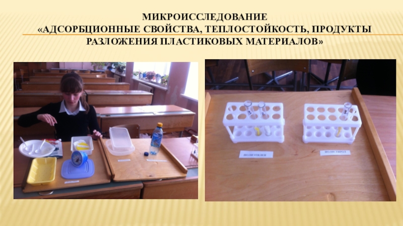 4)Провести микроисследование «Адсорбционные свойства, теплостойкость, химическая стойкость, продукты разложения пластиковых материалов»