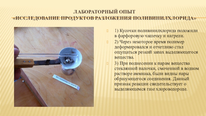 1) Кусочки поливинилхлорида положили в фарфоровую