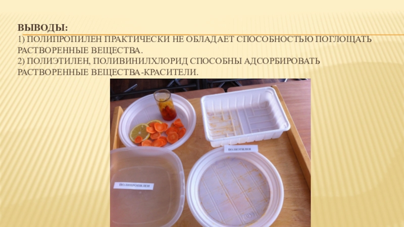 1) Полипропилен практически не обладает способностью поглощать растворенные вещества.