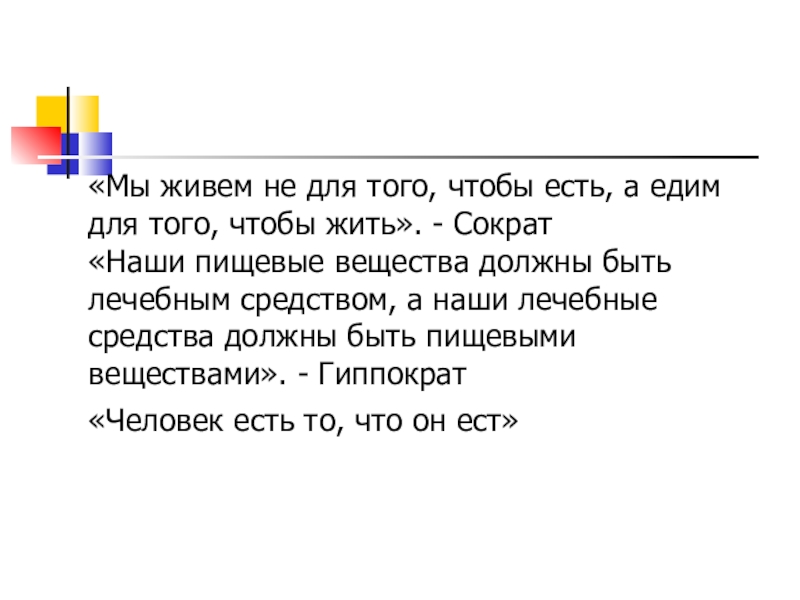 Слайд 4 «Мы живем не для того, чтобы есть, а едим