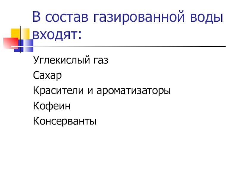 Слайд 7В состав газированной воды входят: