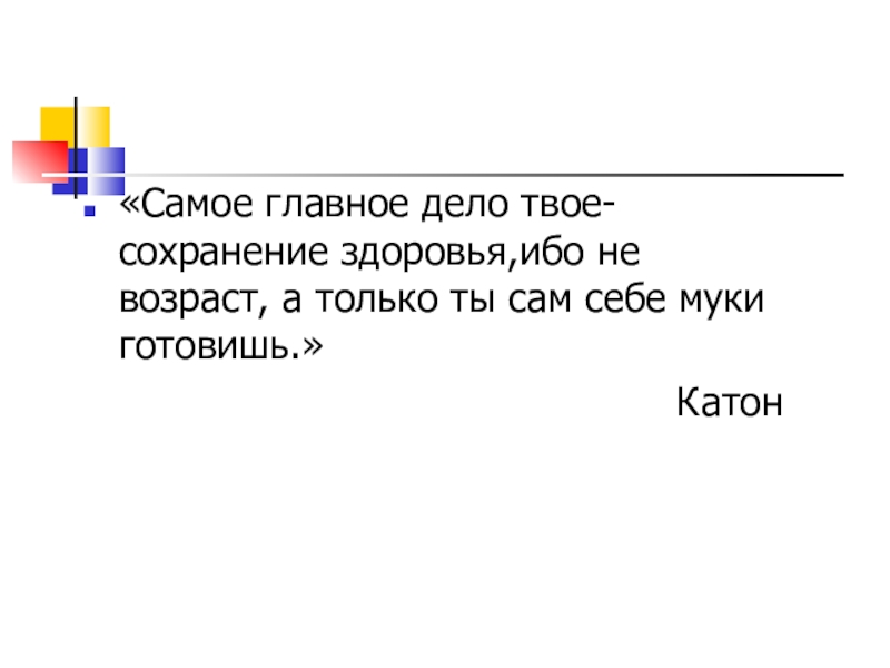 Слайд 2«Самое главное дело твое-сохранение здоровья,ибо не возраст, а только ты сам