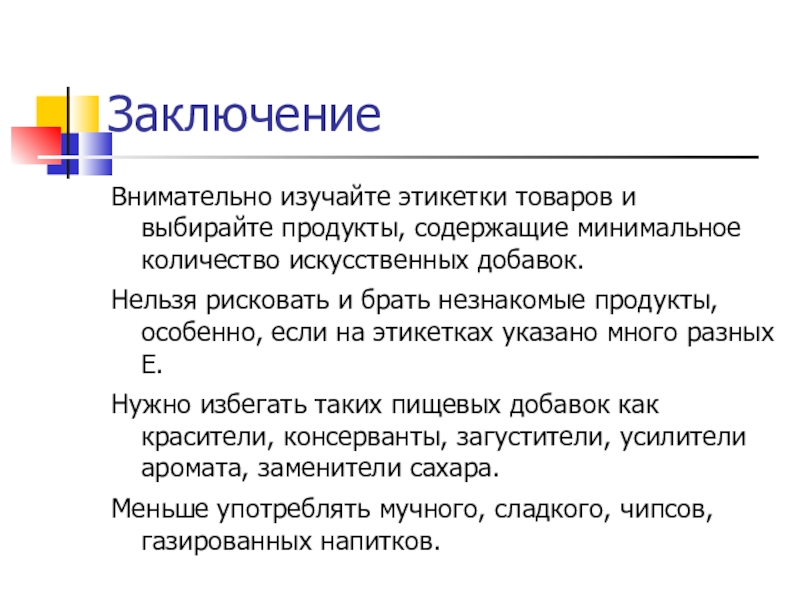 Внимательно изучайте этикетки товаров и выбирайте продукты, содержащие минимальное количество искусственных