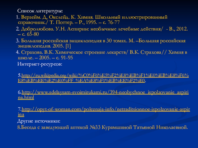 Вывод: Аспирин можно выявить с помощью растворов хлорида железа (III) и фенолфталеина.