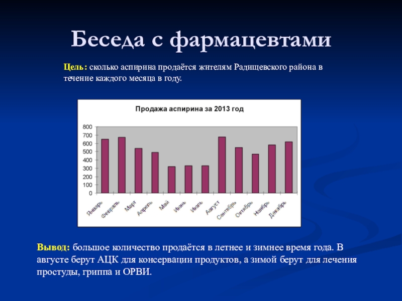 Цель: сколько аспирина продаётся жителям Радищевского района в течение каждого месяца в году.