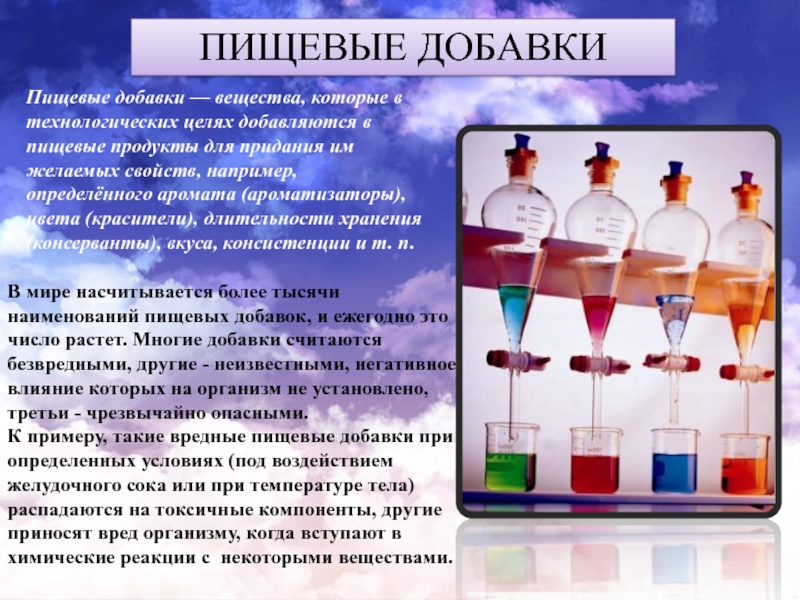 К примеру, такие вредные пищевые добавки при определенных условиях (под воздействием желудочного сока или при температуре тела) распадаются на токсичные компоненты, другие приносят вред организму, когда вступают в химические реакции с некоторыми веществами.
