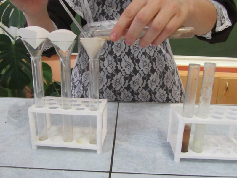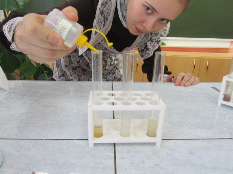 по высоте) и приливаем 2 мл дистиллированной воды. Встряхиваем содержимое пробирки несколько раз и фильтруем. Добавляем к фильтрату 1 мл раствора едкого натра NaOH и 2-3 капли раствора сульфата меди(II) CuSO4. Встряхиваем пробирку. Появляется ярко-синее окрашивание. Такую реакцию даёт сахароза, представляющая собой многоатомный спирт.