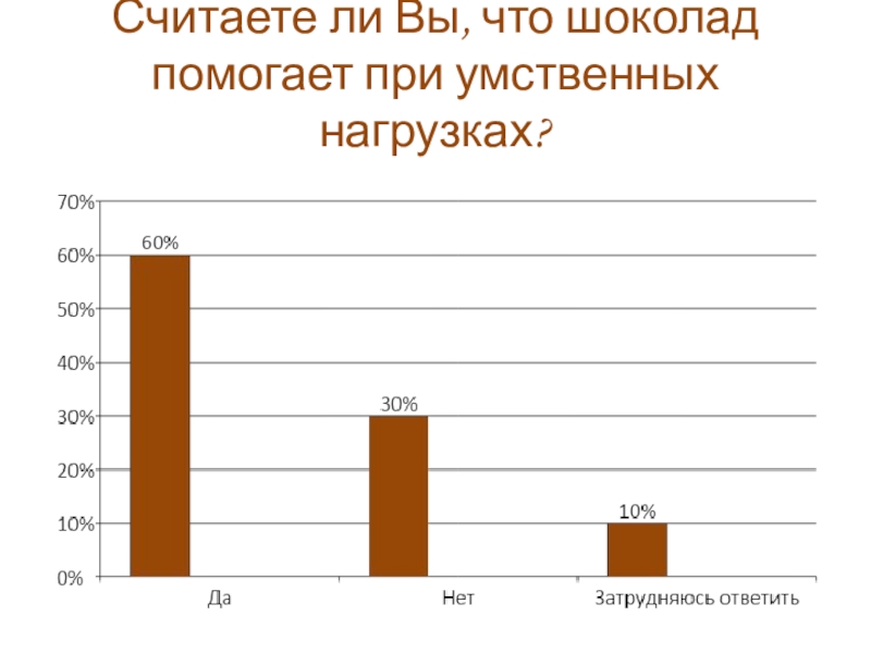 Слайд 58Считаете ли Вы, что шоколад помогает при умственных нагрузках?
