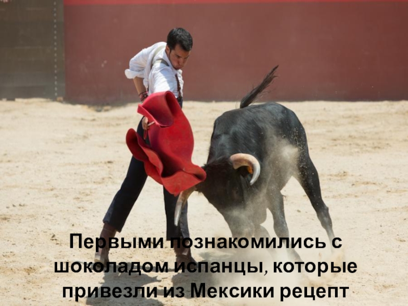 Слайд 8Первыми познакомились с шоколадом испанцы, которые привезли из Мексики рецепт приготовления