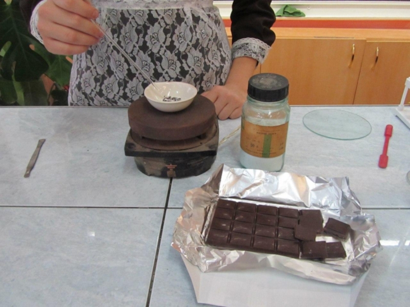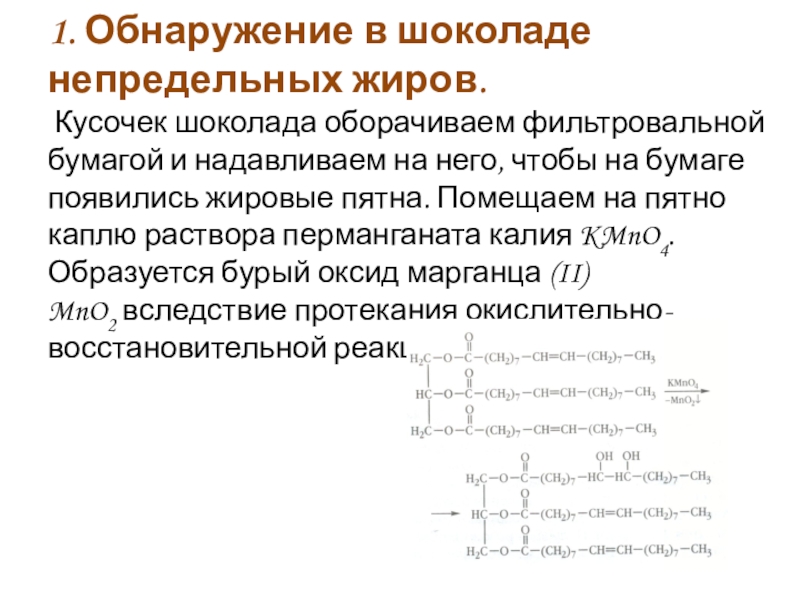 Слайд 291. Обнаружение в шоколаде непредельных жиров.
