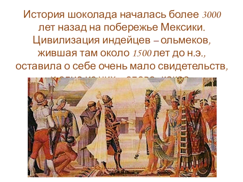 индейцев – ольмеков, жившая там около 1500 лет до н.э., оставила о себе очень мало свидетельств, и одно из них – слово «какао»