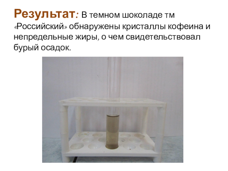 Результат: В темном шоколаде тм «Российский» обнаружены кристаллы кофеина и непредельные