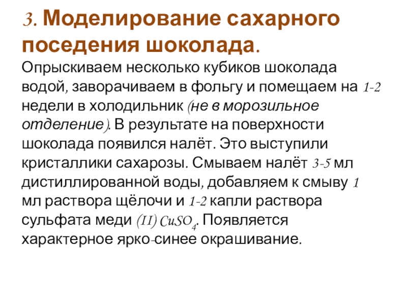 Слайд 373. Моделирование сахарного поседения шоколада.