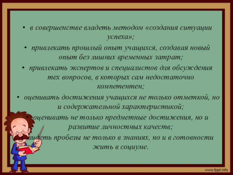 Слайд 8в совершенстве владеть методом «создания ситуации успеха»;