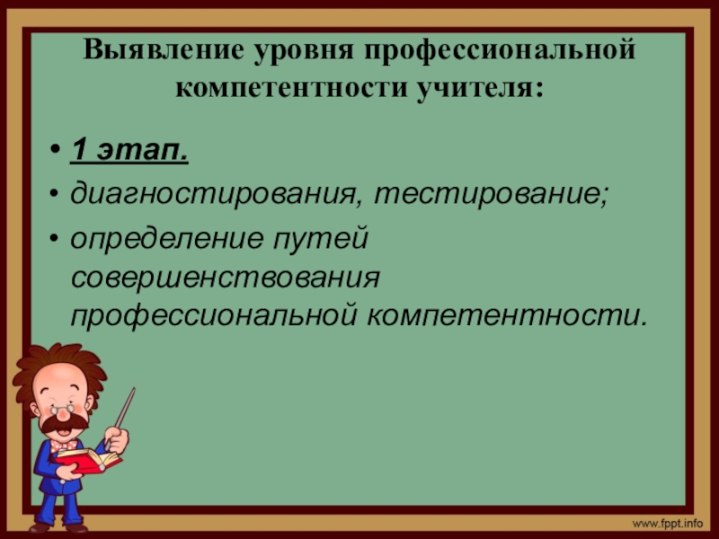 Слайд 14Выявление уровня профессиональной компетентности учителя: