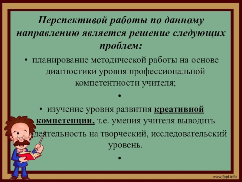изучение уровня развития креативной компетенции, т.е. умения учителя выводить