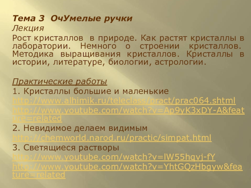 в лаборатории. Немного о строении кристаллов. Методика выращивания кристаллов. Кристаллы в истории, литературе, биологии, астрологии.