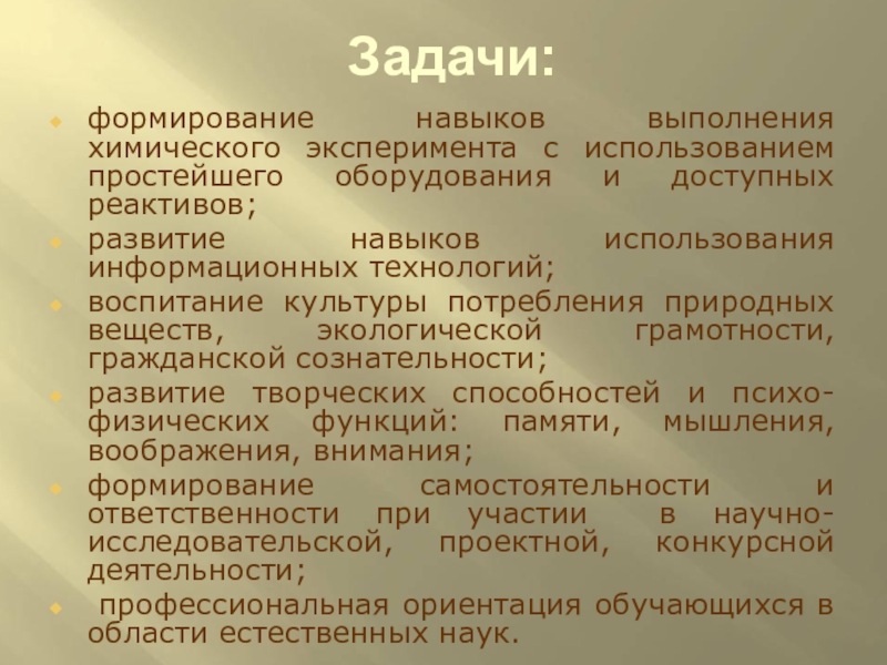 воспитание культуры потребления природных веществ, экологической грамотности, гражданской сознательности;