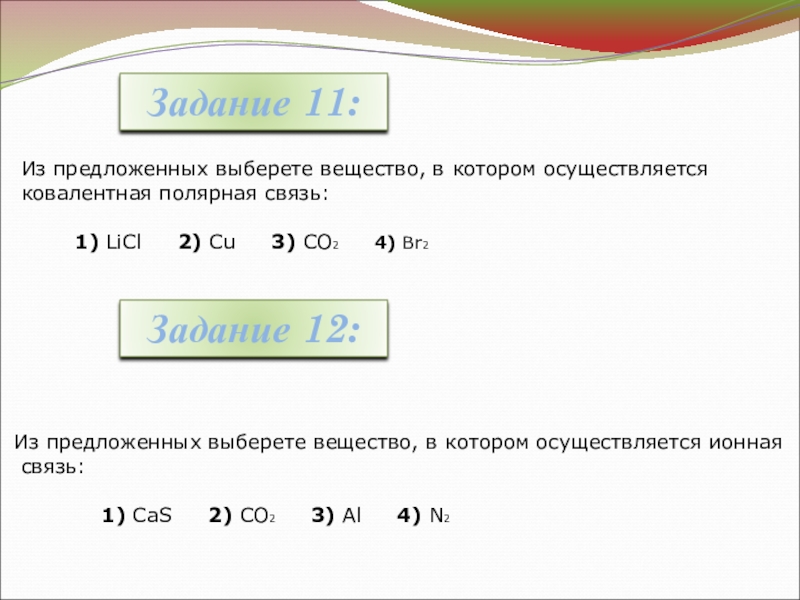 1) LiCl 2) Cu 3) CO2 4) Br2