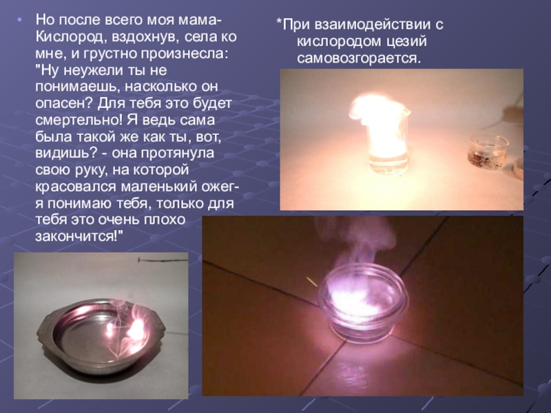 *При взаимодействии с кислородом цезий самовозгорается.